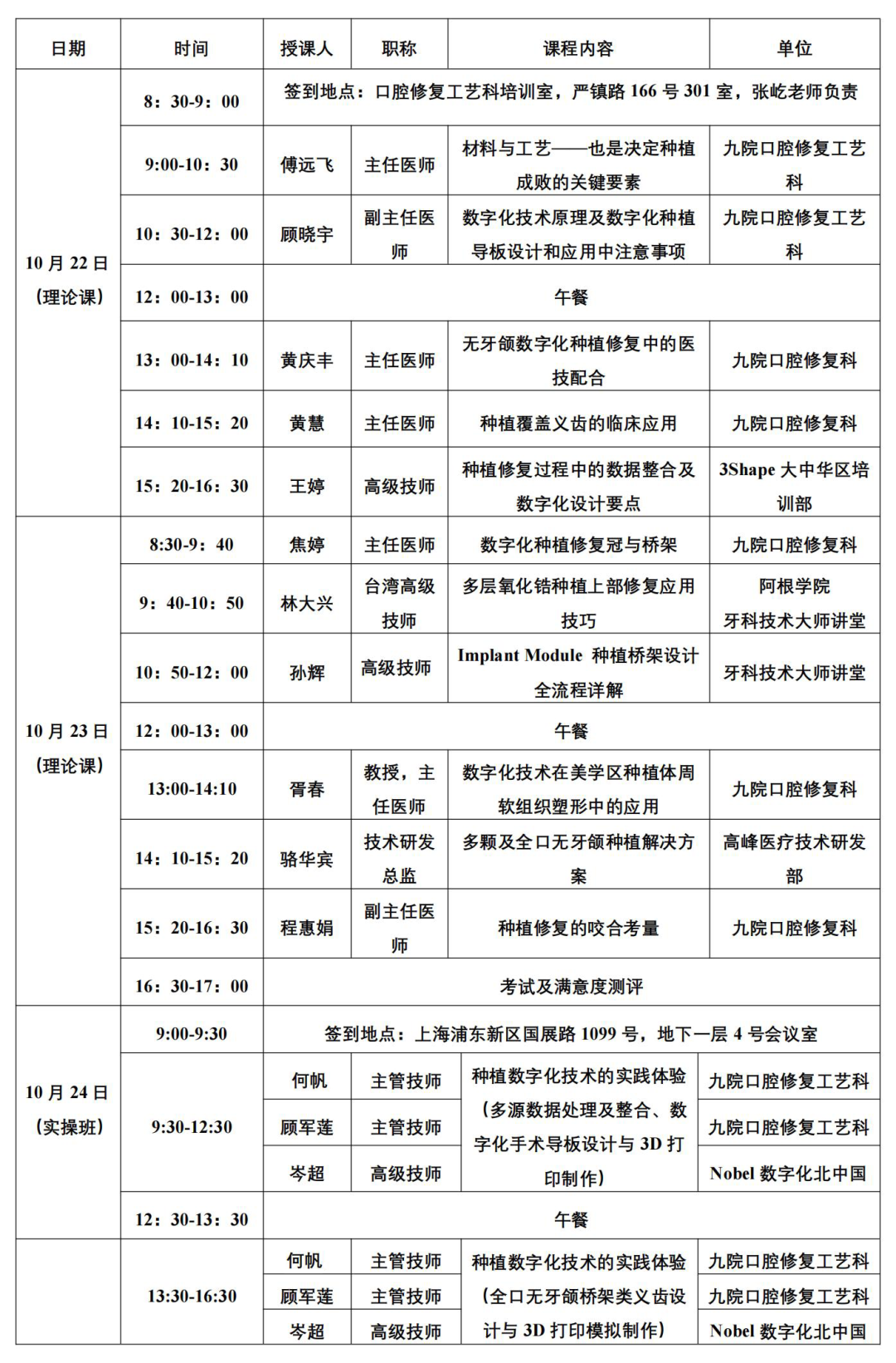 理论课地址:上海市浦东新区严镇路166号301室,九院口腔修复工艺科培训室;