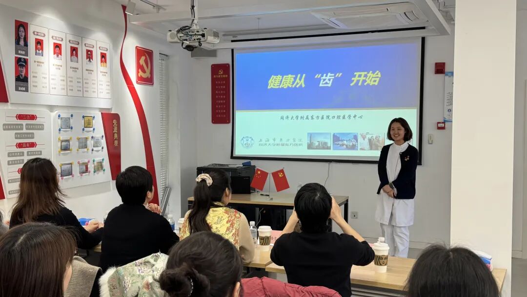 活动在上海市东方医院护士长黄伟琴的主持下开场。上海市口腔医学会口腔护理专委会副主任委员袁卫军主任代表专委会致辞。她首先向到场的社区居民致以亲切问候,并表示,口腔健康不仅关系到日常进食,更与全身健康及生活质量紧密相连。她指出,在“世界口腔健康日”来临之际,专委会组织专家团队走进社区,就是希望将专业的口腔护理知识面对面传递给居民,帮助大家解决从儿童到老年各个阶段的口腔困惑。她还特别介绍了由专委会专家共同编撰的科普书籍《全生命周期口腔健康养护》,并将其赠予居委,供居民学习传阅。东一居民区党支部书记周书记随后发表讲话。他对专家团队的到来表示热烈欢迎与衷心感谢。周书记提到,尽管社区内各类健康讲座不少,但如此高规格、专业化的口腔科普活动尚属首次。她希望通过此类活动,让更多居民在家门口享受到专业的口腔健康指导。