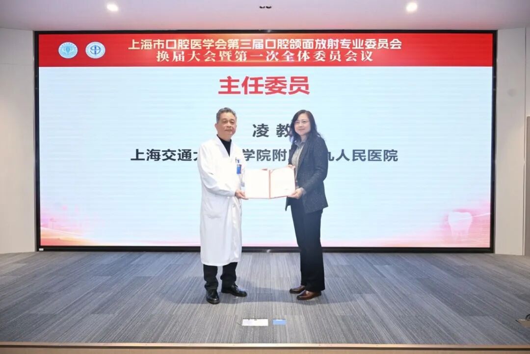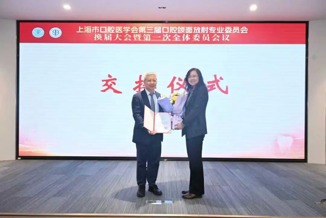 副主委同济大学口腔医院李生娇主任、复旦肿瘤医院吴斌主任向新当选常务委员颁发聘书